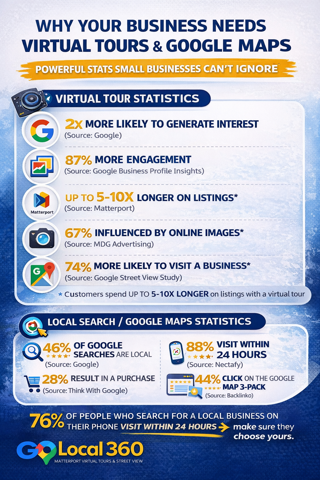 - Businesses with virtual tours are 2x more likely to generate interest